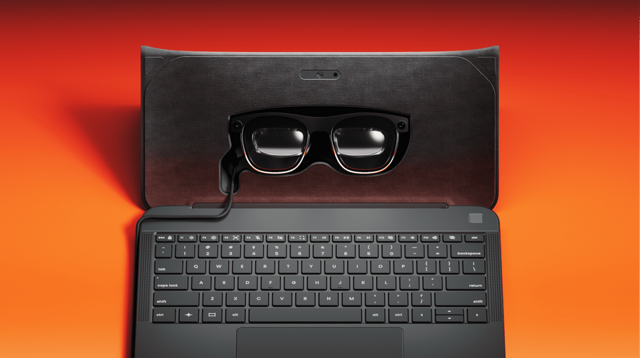 Spacetop is a compact computer stripped down to just a keyboard, trackpad, and a pair of HD augmented reality glasses.